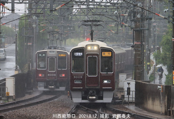 雨の日の写真も撮っておきたい。阪急のLEDは1/250でも筋が出る。