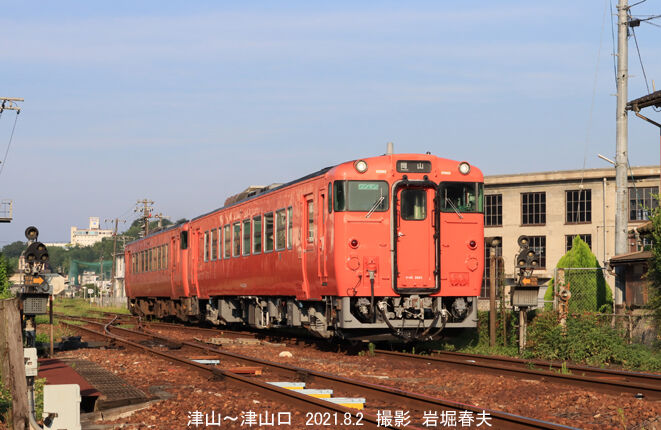 津山線は岡山から津山への路線で、さらに鳥取へ行く人も利用する。津山駅は交通の要衝であった。というのは今の津山駅へ行ってもホームに人影は少ない。4方向へ向かう列車はキハ120の単行が多く、列車本数は多くて1時間に1本である。その中でも津山線はキハ40系の2連が走るだけ利用客は多い方である。
