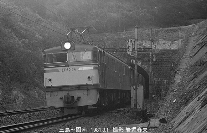 EF6054[沼津]の牽く下り貨物が通過する。