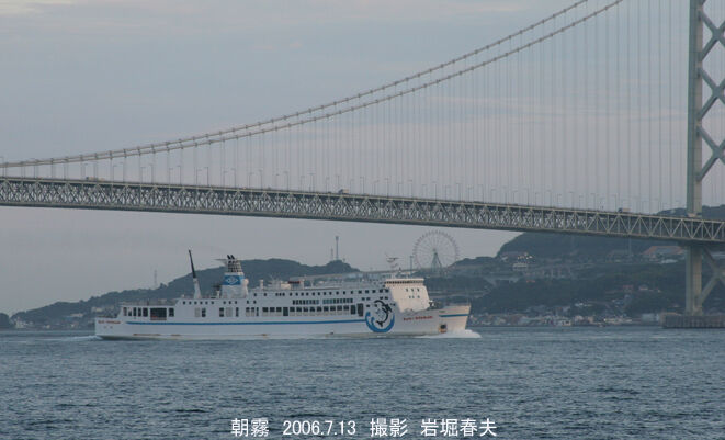 明石海峡大橋を通り、大分へ向かう「フェリーダイヤモンド」。バッくの観覧車が淡路サービスエリアであり、フェリーの撮影ポイントになる。気が付くのが遅れて、ダイヤモンドフェリーはあまり撮っていない。