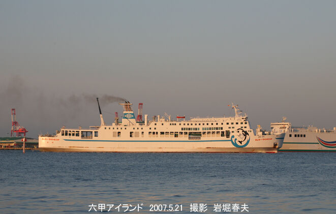 六甲アイランドにフェリーターミナルがあり、「フェリーダイヤモンド」が到着。珍しくオレンジフェリーが写っている。