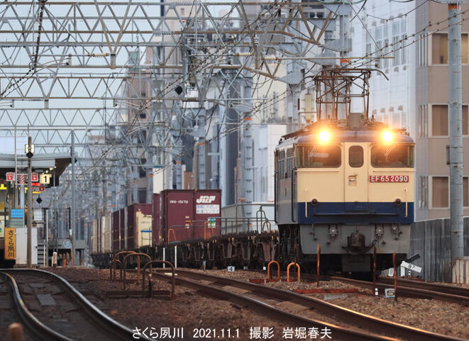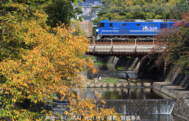 夙川を渡るEF210。桜の季節には人が集まりますが、秋はだれもいません。