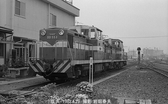 小島新田駅から神奈川臨海鉄道へ行く。塩浜の車庫ではDD555とDD5517が並んでいた。ここでは大体1年に1両の機関車を増備していた。1990年頃から初期車は余剰となり、DD555は東急車両の構内用となる。