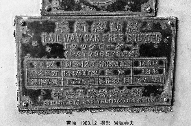 タッグローダーの銘板。富山市の中善工業製である。