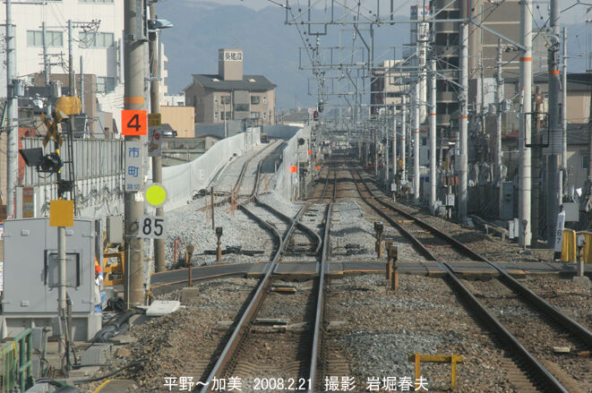 さらに百済の貨物駅関連の工事があり、2011年3月からは貨物列車がEL牽引になる。平野駅の加美寄りで線増工事も行われていた。