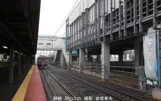 野幌駅は高架工事中だった。2011年10/23に完成している。かつては夕張鉄道が分岐していたが、北海鋼機に古いスイッチャーがいて、何度か行っている。