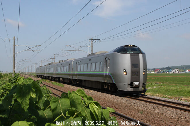特急「スーパーカムイ」が通過。781系に変わって789系1000番代が使われていた。