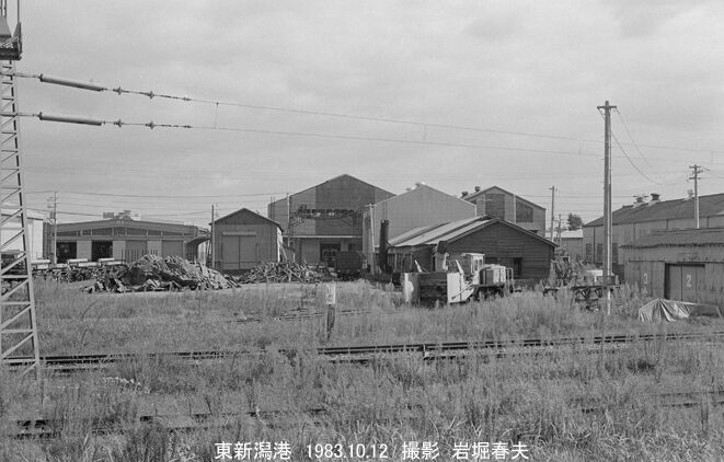 東新潟港は焼島の先にあり、その手前には新潟鉄工所の工場があった。外には20系客車が止まっていた。