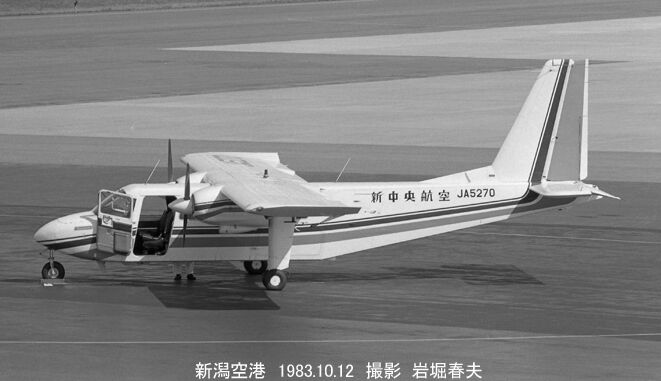 新中央航空は調布から離島航路を運行しているが、当時は新潟から佐渡島への便があり、ブリテン・ノーマン アイランダーを使っていた。その前に来た時はDHC6だったのが変わっていた。