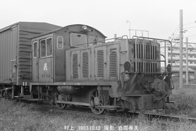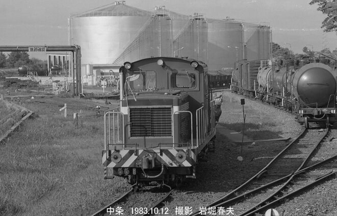 羽越本線の区間に入り、中条駅のクラレ側線にも行った。広い構内にタンク車がたくさん止まっていて、新潟鉄工所製の35トン機が入換えをしていた。