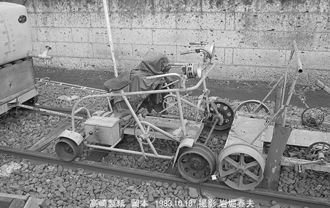 製紙工場の手前には日立製TD3が止まっていた。専用線の犬走は生活道路になっていた。