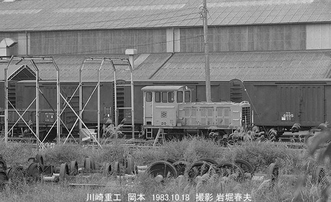 岡本の川崎重工は歴史が古く、戦時中に車両の疎開に使われ、戦後は大宮工場の分工場になる。その後、汽車製造が使い、かつてが引き継いだ。協三の20号機は20トン機で、前歴は北海道開発局である。