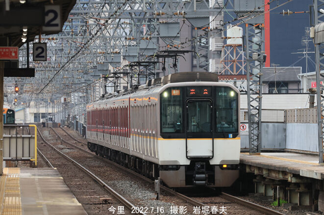 奈良行き急行。先頭の9130という車番もはっきり読める。昼間は車番が読みにくい。