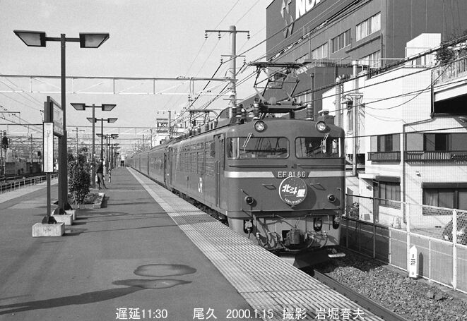 EF8186[田端]牽引の「北斗星」が通過。かなり遅れていた。