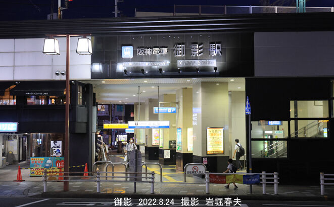 夕暮れの御影駅ホーム。