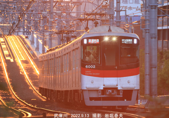 山陽電車の6000系直通特急も接近。