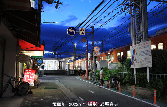 阪神の武庫川駅にどんな特徴があるのか。それはホームの屋根が木造である。かつては多くの駅が木造の屋根だった。震災で倒壊した芦屋駅も木造だった。ほかにもあるかもしれない。そういえば、夜の駅を撮るきっかけは京都駅からだった気がする。昭和初期からの歴史がある屋根の内側がきれいに写っていたのに感動した。暗くて見えなかったものも、夜の光に照らされていた。