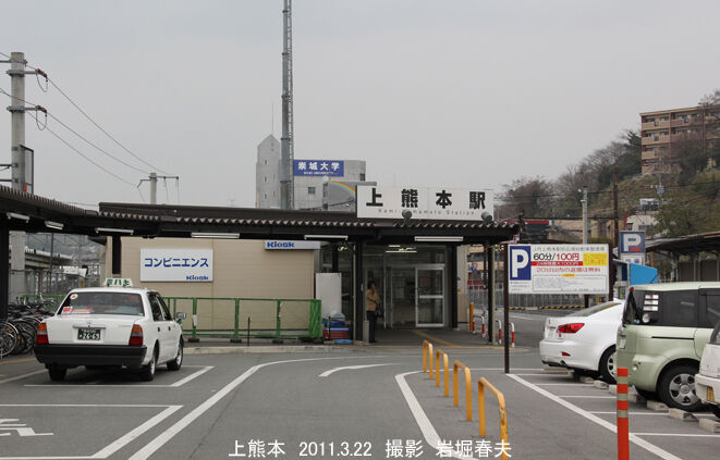 上熊本駅の駅舎は高架の新駅舎ができる前の仮駅舎。その前のレトロな木造駅舎も撮っているが、移築されて市電の駅として使われている。