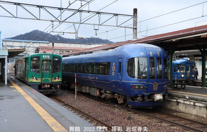 西舞鶴駅に特急「まいづる」が到着。東舞鶴行きで、綾部までは「はしだて」と併結だった。