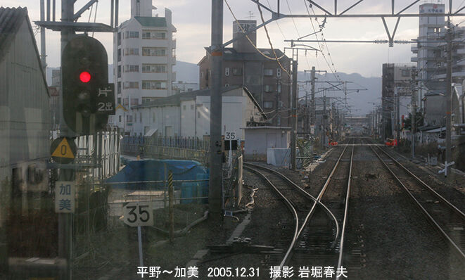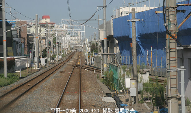 こちらは平野側の分岐。城東貨物線が分かれていて、遠方に加美駅が見える。