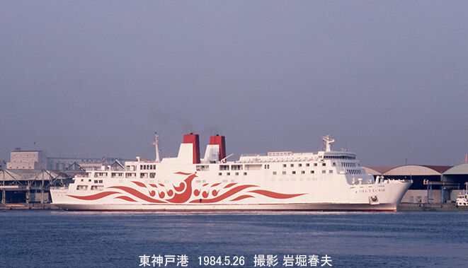 四国中央フェリーボート 「かわのえ」が入港。1973年に就航した3000トン級フェリー。愛媛県の新居浜市と川之江市から阪神に来ていた。