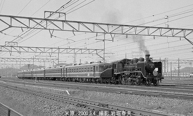 滋賀県の湖北で運転されるSL列車で、梅小路のC56160が12系客車を牽いて米原~木ノ本間で1995年から運転されていた。12系客車は大阪万博前年1969年に登場した新型客車で、万博期間中は全国各地から大阪へ臨時列車が多数運転された。定期列車の増発でも使われることがあり、夏には冷房が効いて快適だった。初めて撮ったのは1969年8月に呉線でC59が牽いて来た。蒸機時代には被写としては敬遠されたが、その後客車列車の減少により注目度が高くなっていた。
