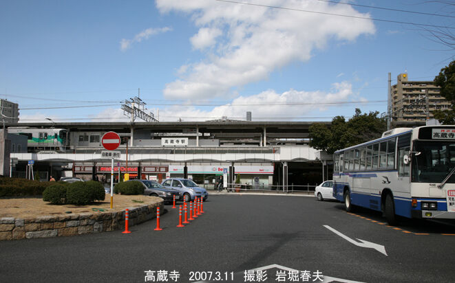 高蔵寺駅の駅前。当時はJRバスも発着していた。こちらが南口で、北口に名鉄バスのターミナルがある。高架下を通り抜ける通路もある。
