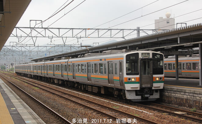 多治見駅に停車中の211系電車。