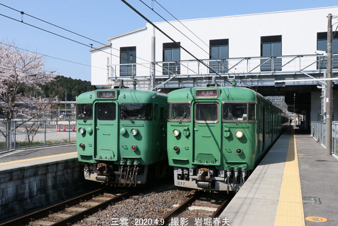 三雲駅で抹茶色の地域色が並んだ。三雲駅も2017年に橋上駅舎と南北自由通路の供用が始まった。