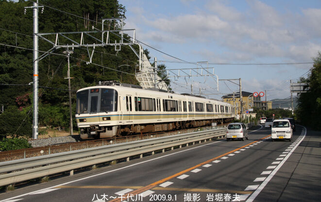 さらに先で国道と並走する区間もあった。この付近までが亀岡市で、その先は南丹市になる。221系には霜取りパンタを追加したもの登場した。