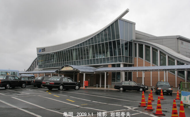 亀岡駅の駅舎はこじんまりとした感じのいい建物だったが、2008年に大規模な橋上駅舎が完成した。列車が着くとたくさんの学生や観光客が降りてきて活気あふれる雰囲気になった。