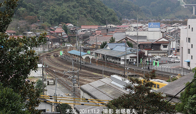 木次駅と鉄道部を俯瞰する。かつては機関区がありC56がたくさん休んでいた。