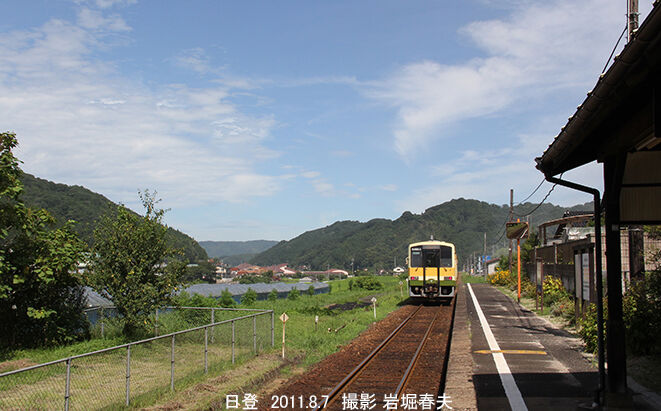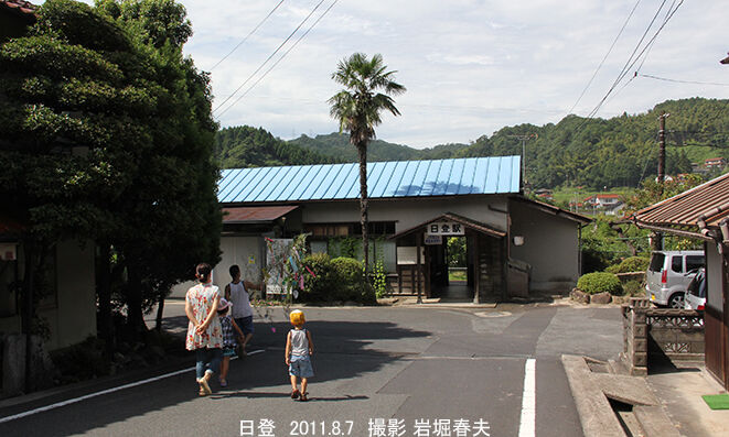 日登駅は1932年開業以来の木造駅舎が使われていた。2018年には改修工事で増築されている。右側に新しいトイレができた。駅事務所は建設業者が使っている。