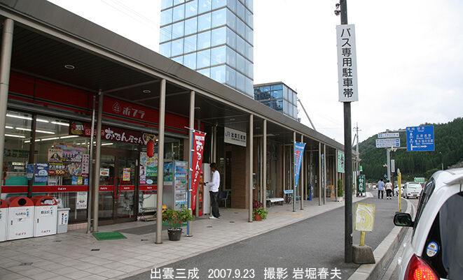 出雲三成駅は2001年に物販販売所と併設の新駅舎ができた。国道314号線と412号線が交わる地点になり、広い駐車場のある観光施設になった。コンビニの「ポプラ」は2016年に閉店し、その後は観光協会が使っている。