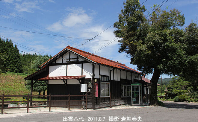 出雲矢代駅も古い木造駅舎を整備して使っている。右側にトイレができた。駅のある奥出雲町は2005年に仁多町と横田町が合併して発足した。たたら吹きとそろばんで有名である。