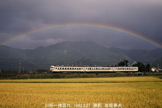 交通公社「旅」の別冊に採用された磐越西線の虹写真。麦畑の中をサンダル履きで全力疾走したことを覚えている。