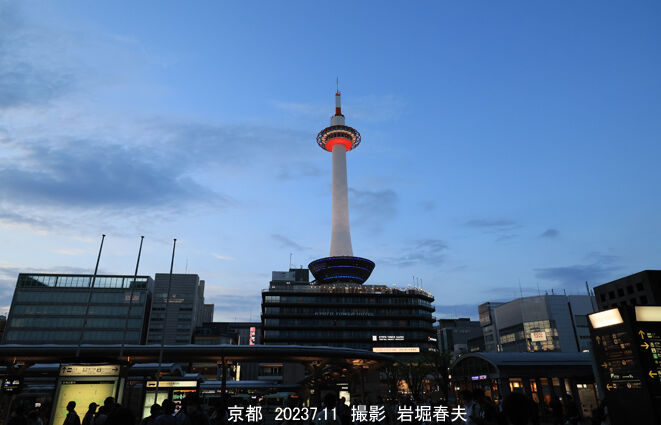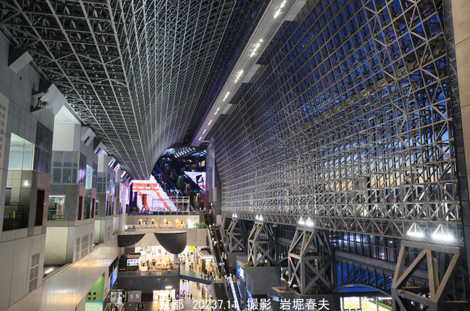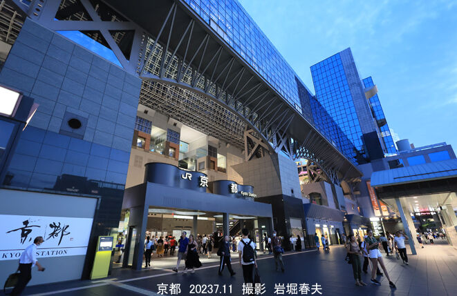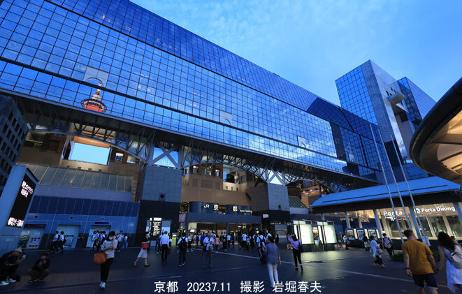 京都駅の駅ビルは1997年に完成した。正面になる烏丸口は北側を向いていて撮影チャンスが少なかったが、夕暮れの時間にたくさん撮影した。