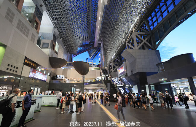 京都駅の烏丸口コンコース。外国人観光客も戻ってきて賑わっている。