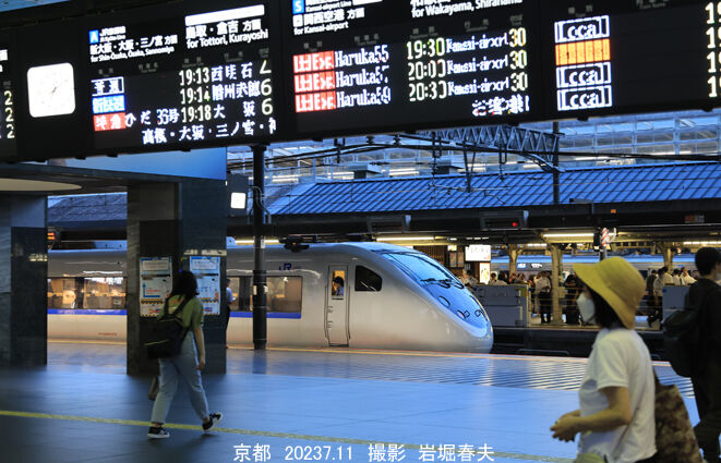 221系はJR西日本の最古参になる日も近い。京都駅では本線の他にも接続する各線への運用がある。高倉跨線橋は戦前からの有名撮影地で昭和29年に現在の橋桁に架け替えられた。歩道が狭く、歩行者は少なかったが、今は外国人観光客の通行が増えた。