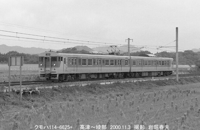 この日はジョイフルトレインの「あすか」が走り、その後、小浜線に行って気動車のサイドビューを撮り、さらに後日、福知山線で新登場の113系3800番台を撮っている。これは2000年に吹田工場で改造された2両編成で、クリーム系の塗装である。クモハ113がモハからの先頭車改造で、切妻の前面が印象的だった。2008年に引退したので短命に終わった。