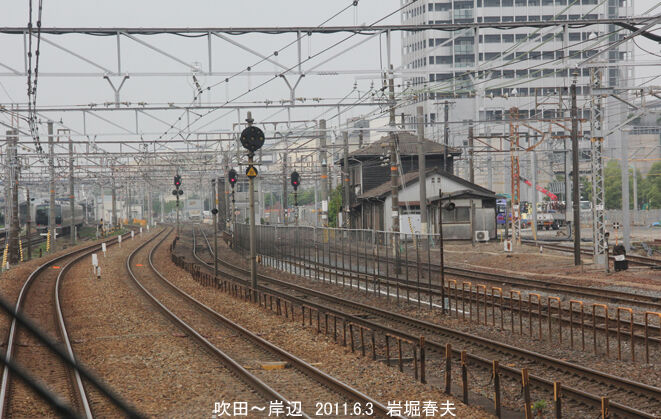 吹田駅の東側にある吹田第七信号場。ここで下り貨物の機関車を付け替えたり、乗務員が交代する。