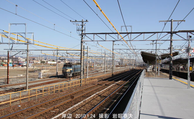 吹田機関区からEF210が出てきた。千里丘駅の方に向かう機関車は岸辺駅のホームから撮影できる。
