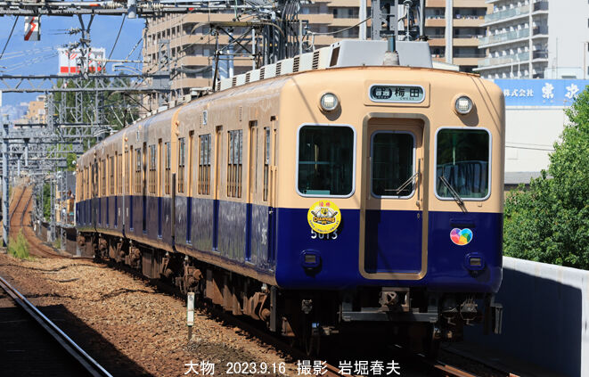 タイガース号を先頭に大阪梅田へ向かう。時間的に順光で撮れる場所は限られていた。