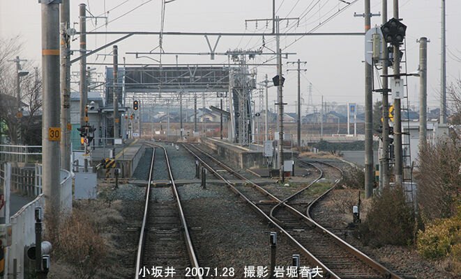 左端には上下線対応の待避線があったが、すでに撤去されている。この区間では日車豊川工場の出入りで回送列車が走り、この駅で撮ったこともある。