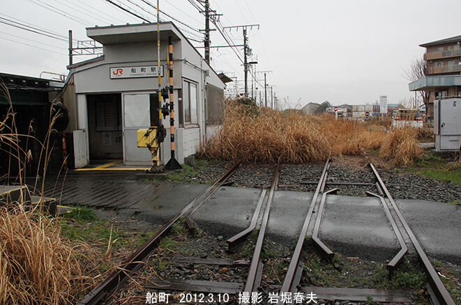 飯田線で豊橋を出て最初の駅が船町駅。駅の横には貨物ヤードがあったが使われていなかった。