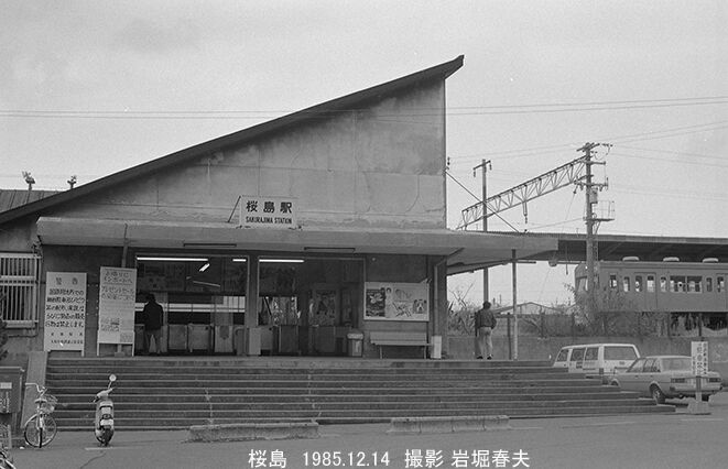 桜島線の桜島駅はこんな形状だった。通勤時間帯には混雑しただろうが、昼間は閑散としている。