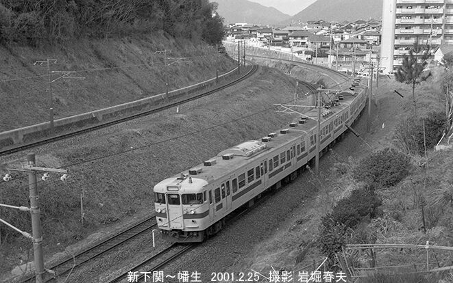 クハ115-2017を先頭に下り普通が通過。中間の線路は山陰本線になる。