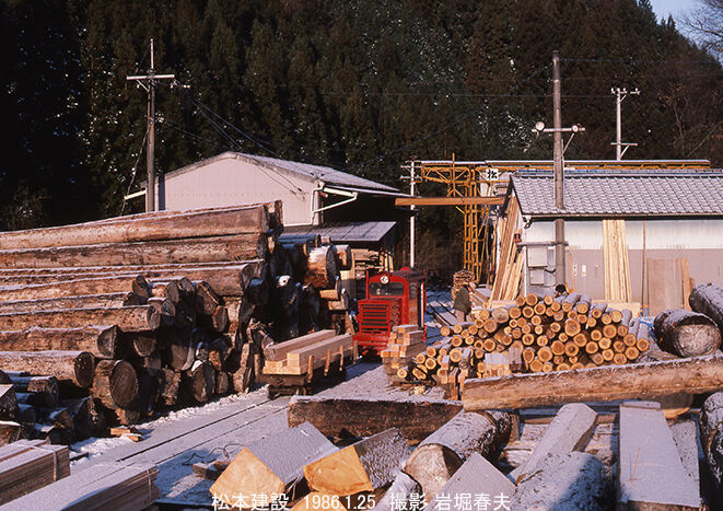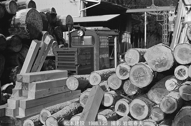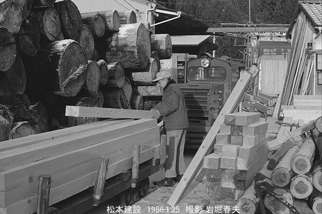 製材した柱を下ろしている。