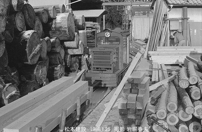 構内には大型の門型クレーンがあり、今度は丸太を製材所に運ぶ。