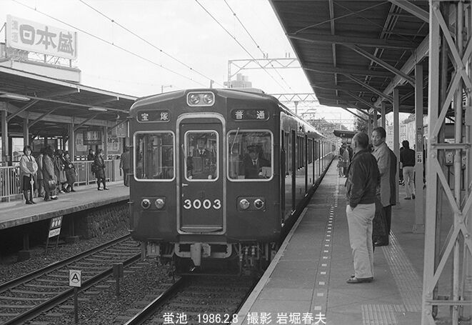 蛍池駅に到着する3000系の宝塚行き普通。